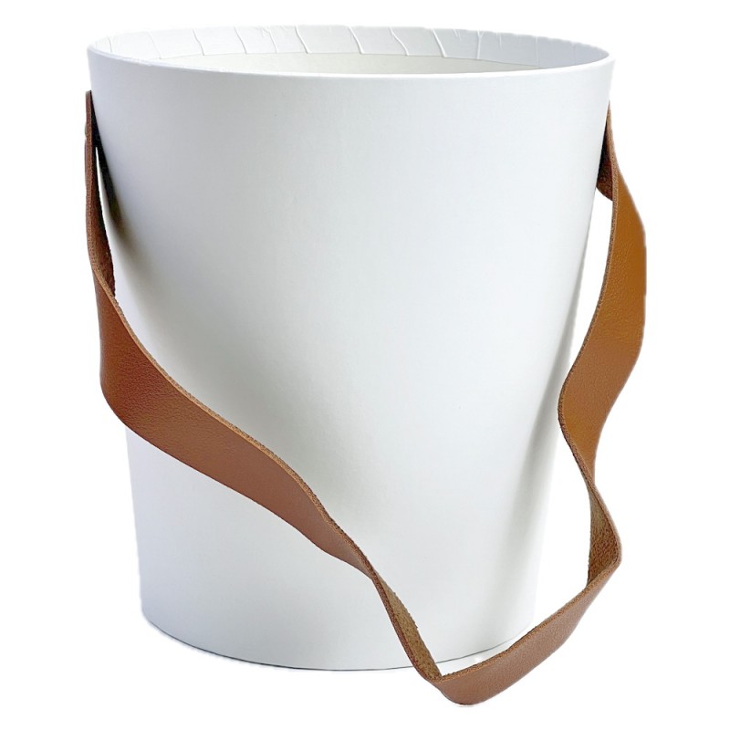 Кашпо для цветов с кожаной ручкой «Конус», 15×17см, (цвет белый)